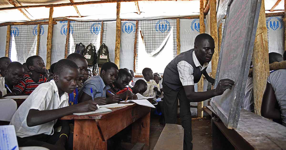 Give a blackboard to a class of refugee children